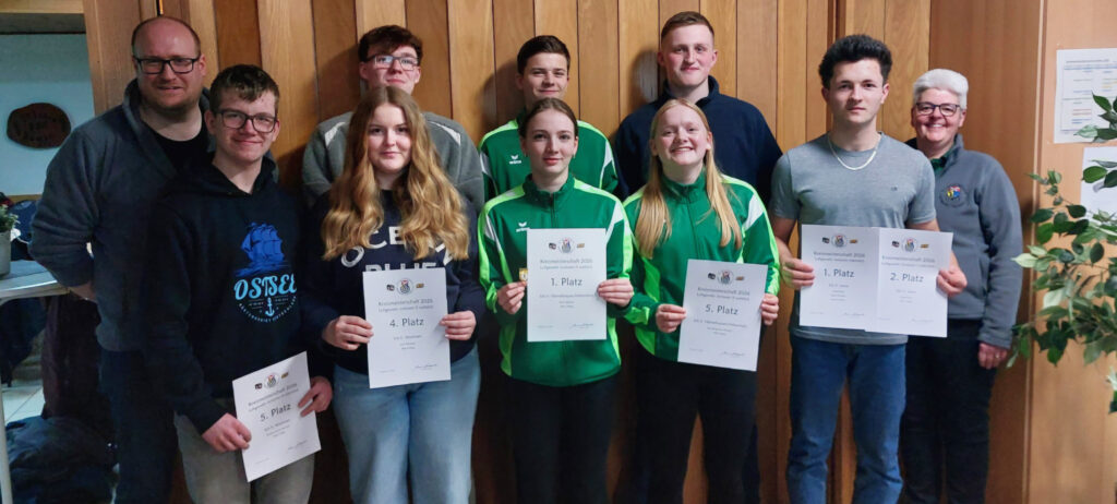 Auch die Mannschaftswertungen boten starke Ergebnisse. Bei den Juniorinnen I gewann der SchV Steimbke mit 1.149,6 Ringen (Mia-Milou Reppin, Emily Wege, Lena Mußmann). In der Klasse Junioren I setzte sich der SchV Leese e.V. mit 590,3 Ringen (Jonas Rose, Sören Kromp, Jannis Haase) durch.